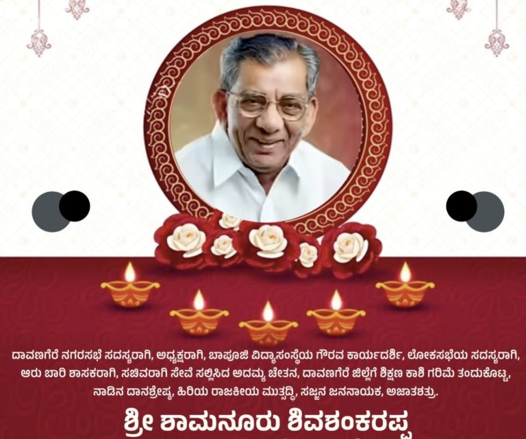 ಹಿರಿಯ ರಾಜಕೀಯ ಮುತ್ಸದ್ಧಿ, ಸಜ್ಜನ ಜನನಾಯಕ, ಅಜಾತಶತ್ರು ಶಾಮನೂರು ಶಿವಶಂಕರಪ್ಪ ಅವರ ಶ್ರದ್ಧಾಂಜಲಿ ಸಭೆಯನ್ನು ಹೊಳಲ್ಕೆರೆಯ ಗಣಪತಿ ಕಲ್ಯಾಣ ಮಂಟಪದಲ್ಲಿ ಡಿ.22 ಸೋಮವಾರ ಬೆಳಗ್ಗೆ 10.30ಕ್ಕೆ ಆಯೋಜಿಸಲಾಗಿದೆ.